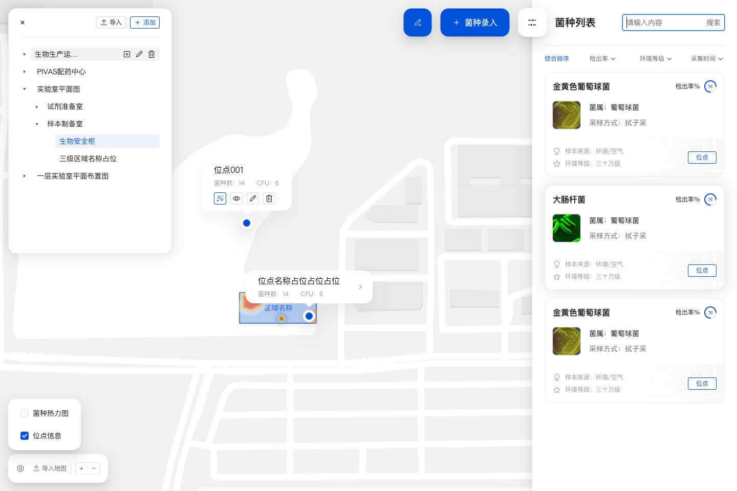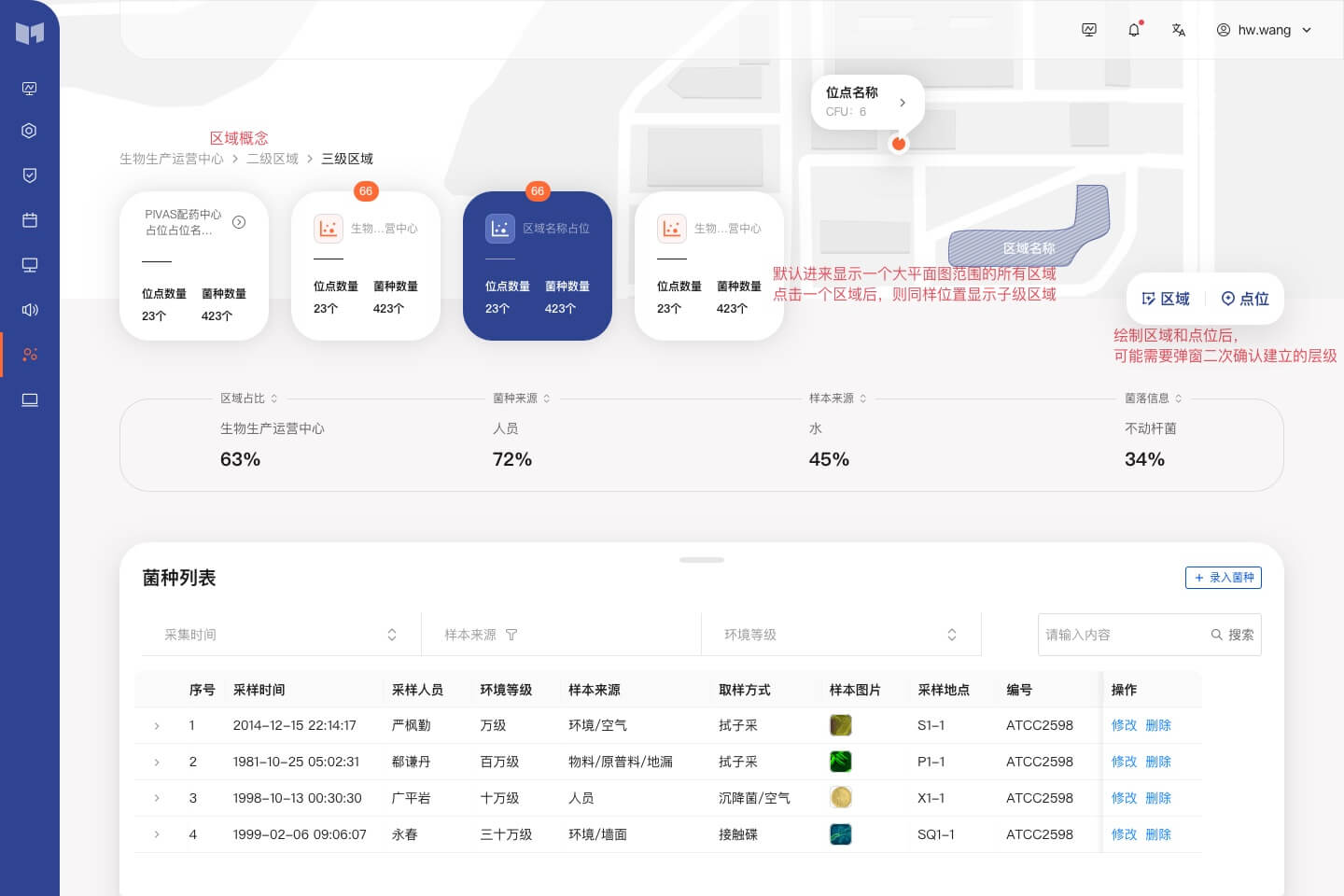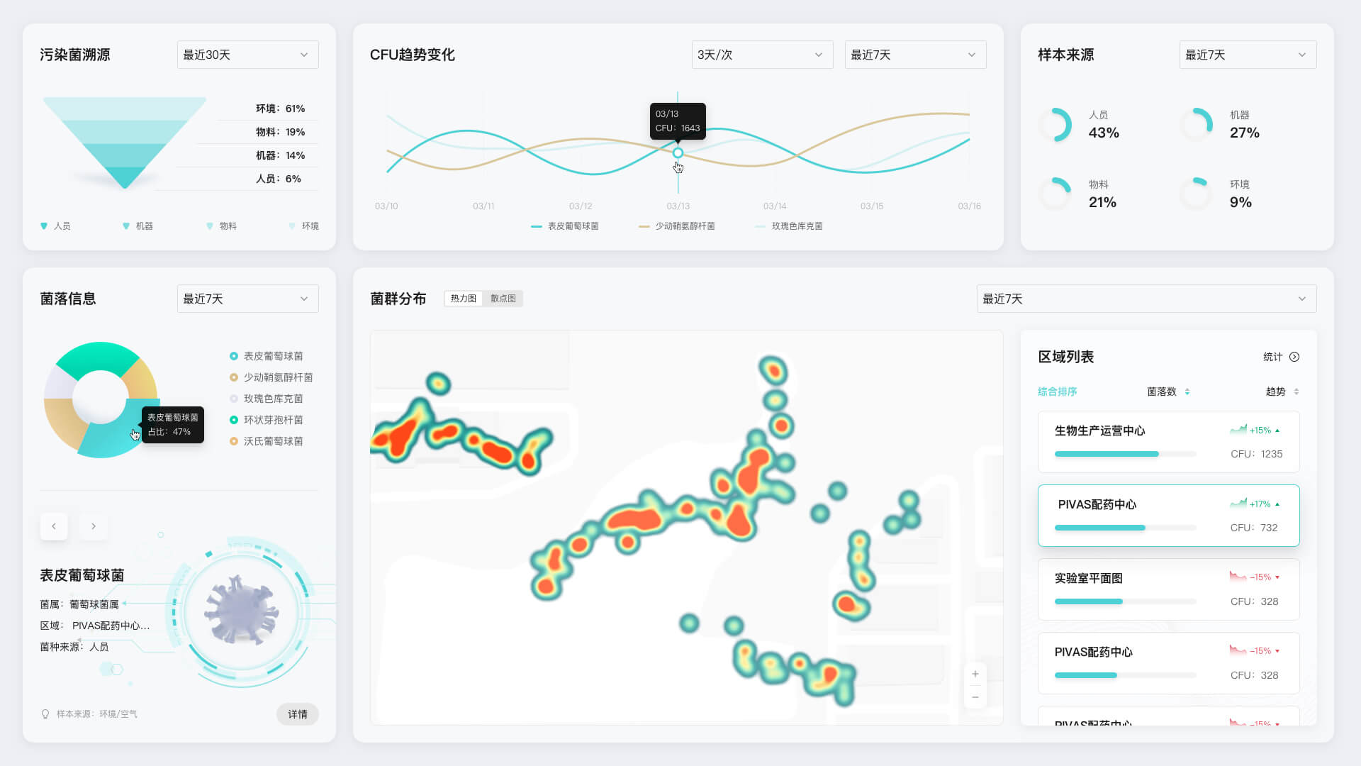 微生物管家&2023 By: 王大哥 | 2 5 月, 2023 | 分类目录: WEB端, 可视化数据大屏 | 标签: Web, 大屏可视化 | 形式: 图片 本项目设计全部由本人操刀,但是风格上还是要听从boss的建议(个人感觉整体色调太浅了)。制药行业门槛还是很高的,前期花了很长时间去“入门”,不了解业务逻辑很难设计到点上。