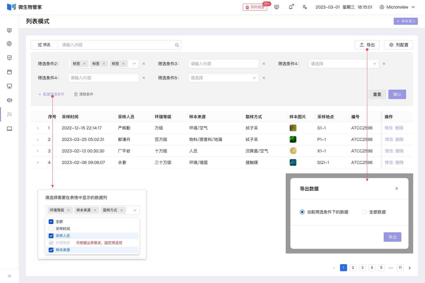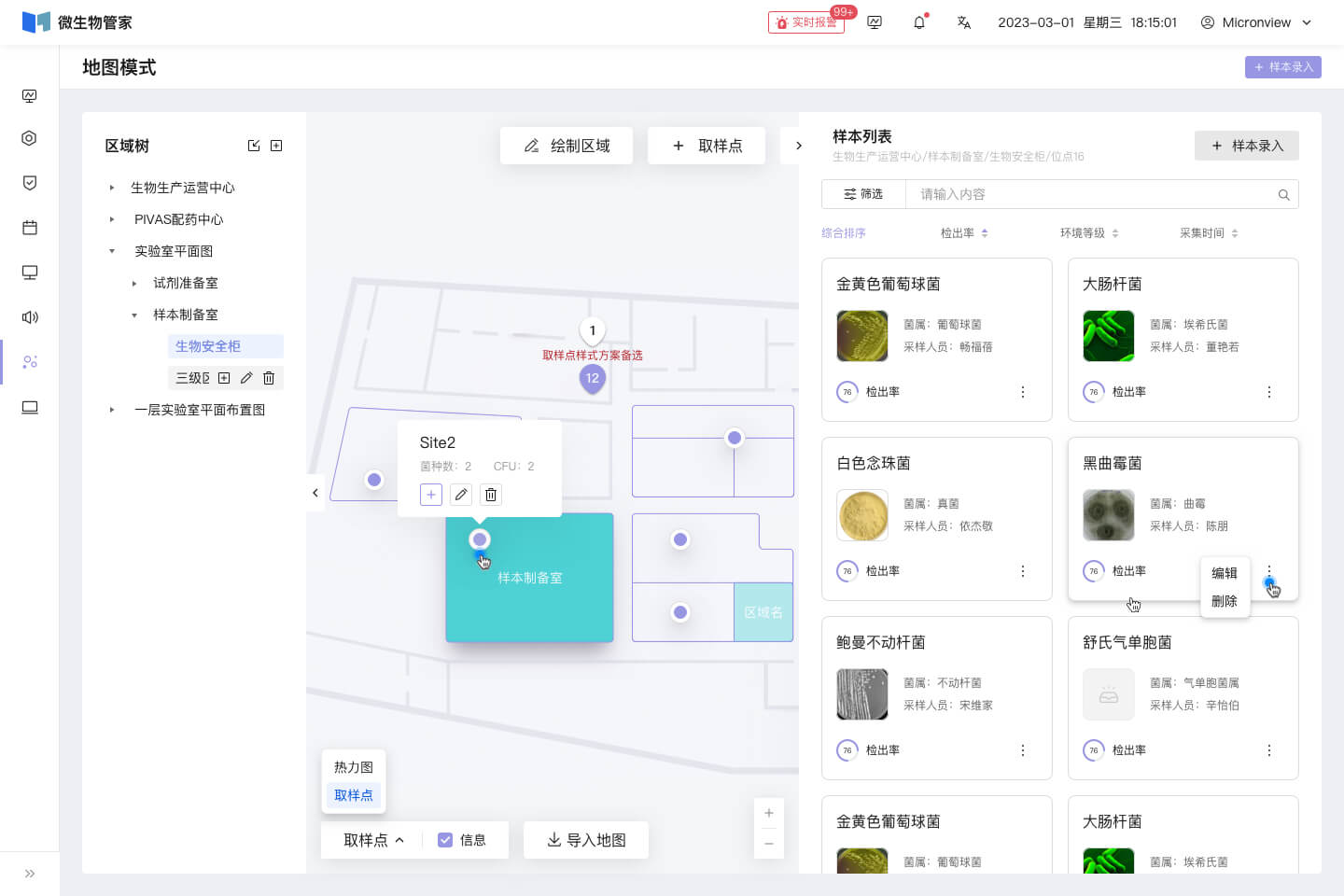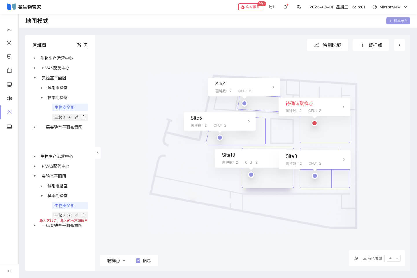 微生物管家&2023 By: 王大哥 | 2 5 月, 2023 | 分类目录: WEB端, 可视化数据大屏 | 标签: Web, 大屏可视化 | 形式: 图片 本项目设计全部由本人操刀,但是风格上还是要听从boss的建议(个人感觉整体色调太浅了)。制药行业门槛还是很高的,前期花了很长时间去“入门”,不了解业务逻辑很难设计到点上。